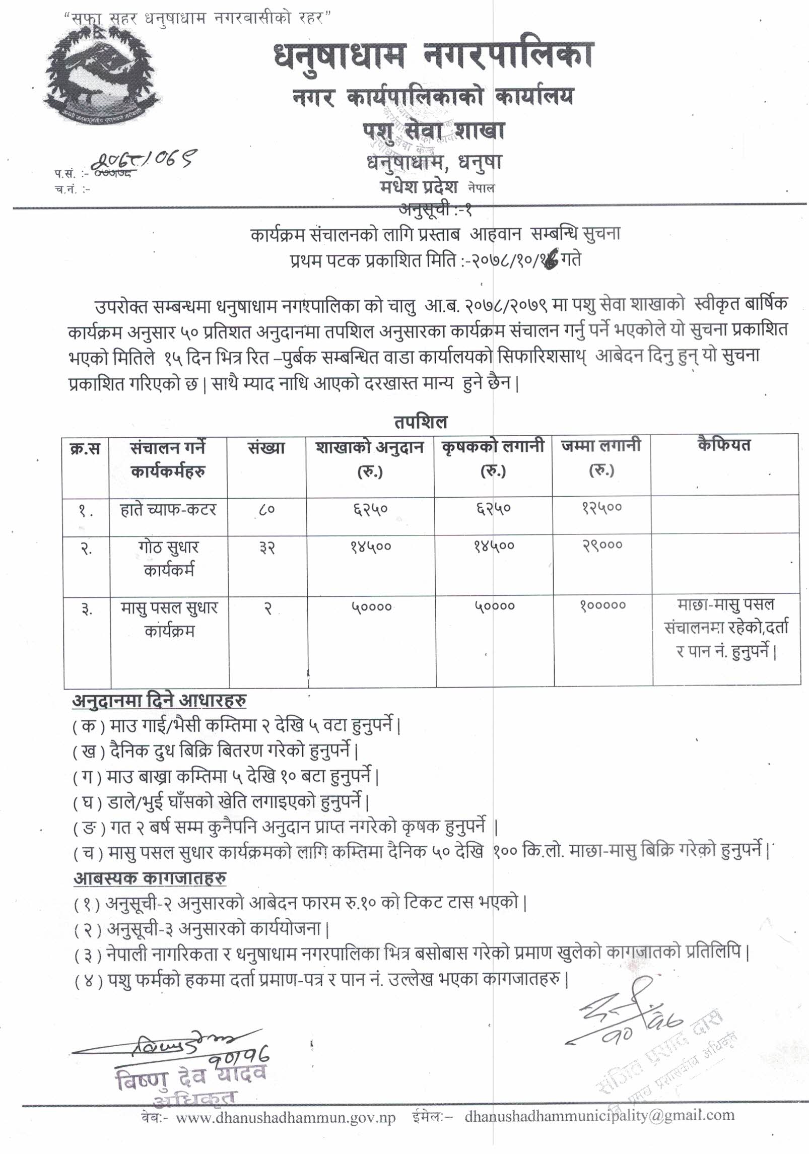 कार्यक्रम सञ्चालनकाे लागी प्रस्ताव आहवान सम्वन्धी सुचना ।