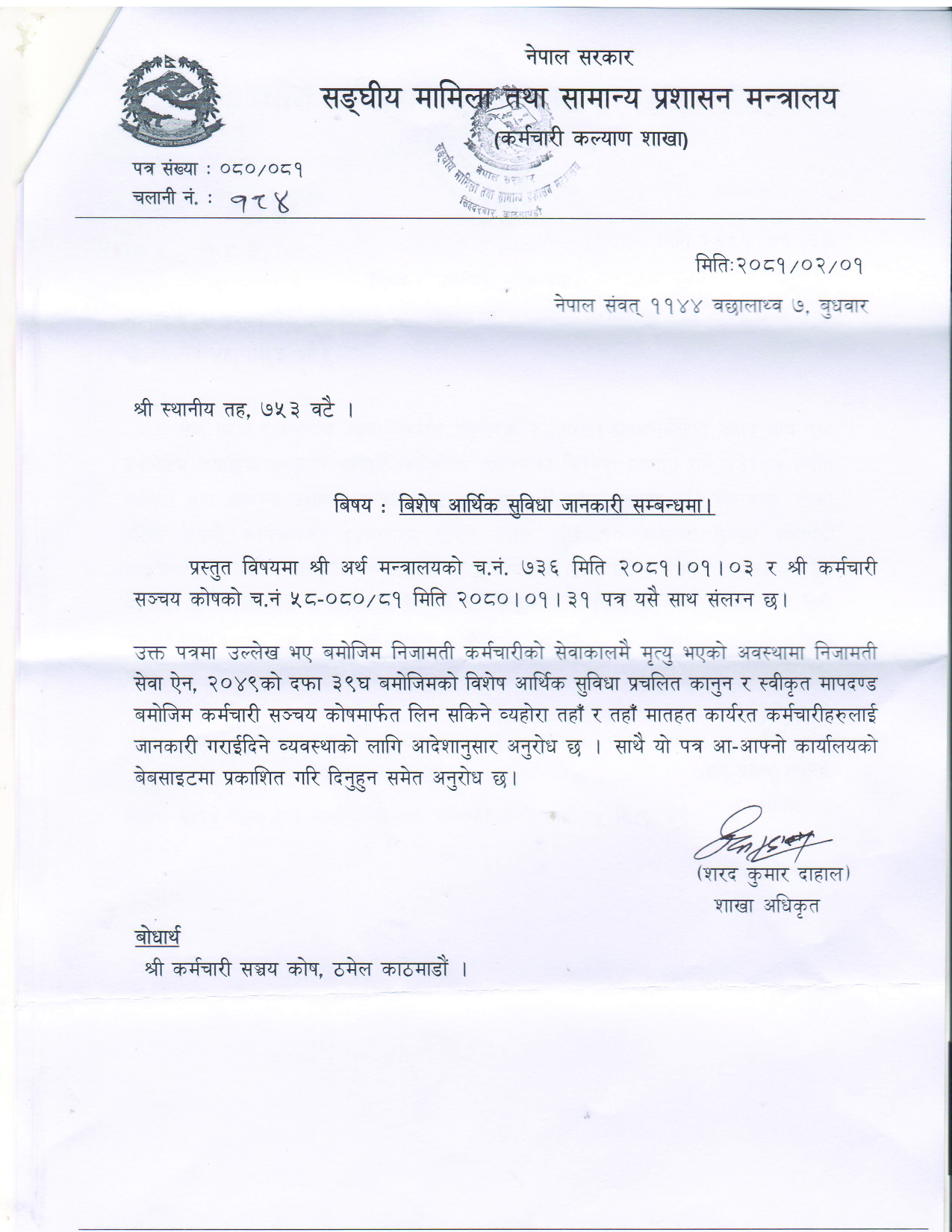 बिशेष आर्थिक सुविधा जानकारी सम्वन्धमा ।